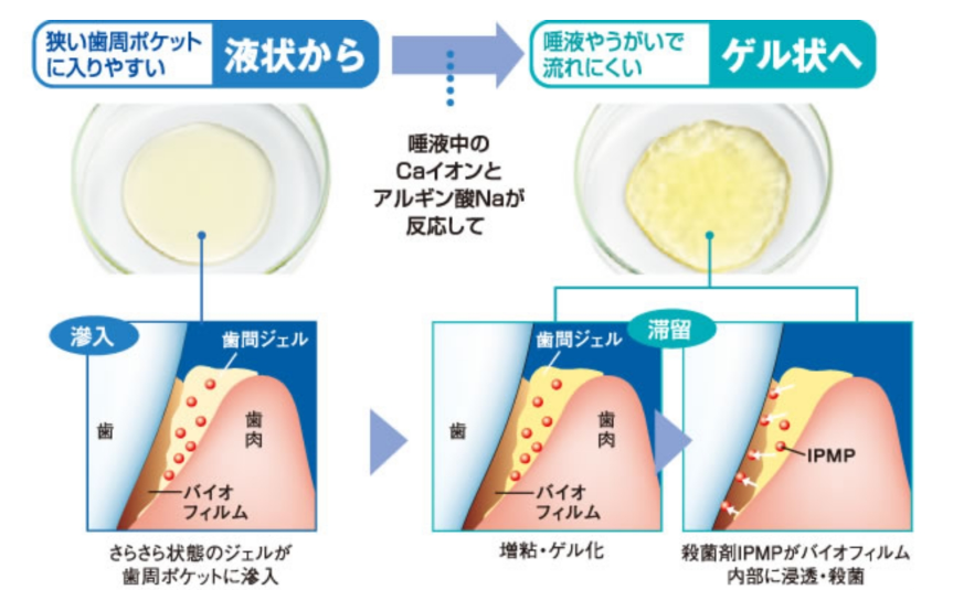 「薬用歯間ジェル」は、IPMP・CPC・フッ化物・抗炎症成分の4つの薬用成分が配合されており、むし歯や歯周病の予防に適しています。