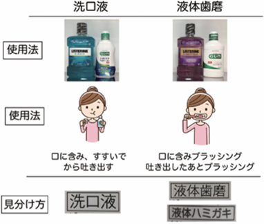 まず、液体として売られているものには「洗口液(マウスウォッシュ)」と「液体歯磨剤(デンタルリンス)」があります。