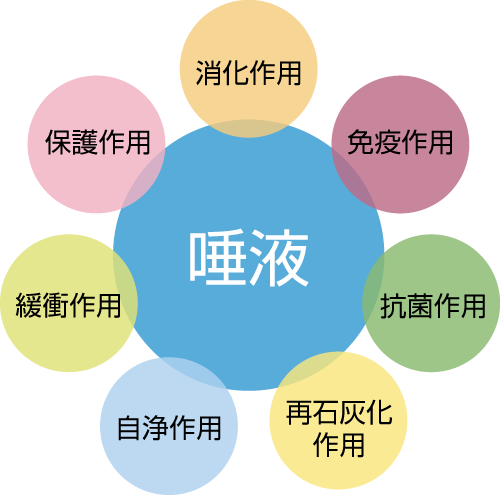 そして唾液は左図(←)に示すようないろいろな役割を担っています。