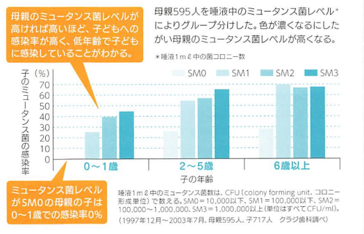 日本人の大人の約9割がミュータンス菌を持っているといわれています。でも、生まれたばかりの赤ちゃんの口の中には、むしば菌は生息していません。では、どこから感染が起きているのでしょうか?