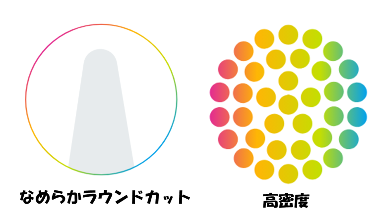 また歯ブラシの毛先の形態も大きく、テーパードカットとラウンドカットがあり、歯肉のケアを重視したい歯周病患者さんにお勧めなのがテーパードカットで、プラーク除去力を重視したい患者さんにはラウンドカットがおすすめです。