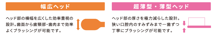 頭部(ヘッド)の厚みが薄いので、狭いところも隅々まで到達できます。奥歯が磨きにくい人にピッタリです。