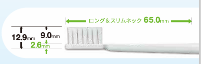 頭部(ヘッド)が薄く、頸部(ネック)も長いので、無理なく奥歯まで到達しやすいです。奥歯のむし歯リスクが高い方におすすめです。