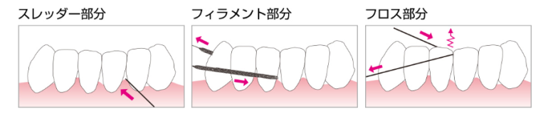 歯と歯の間にスレッダーを通して、フィラメントでプラークを除去していくのですが、慣れるまでは少し扱いが難しいです。