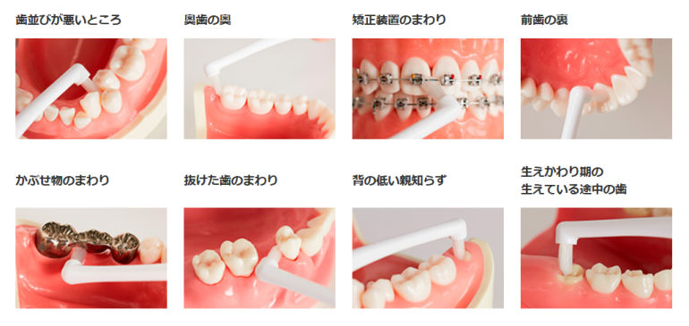 デンタルフロスと同様に歯と歯の間のプラークを除去するのに有効で、歯と歯の隙間が広い人や歯周病等で歯肉が下がってしまった方にお勧めです。