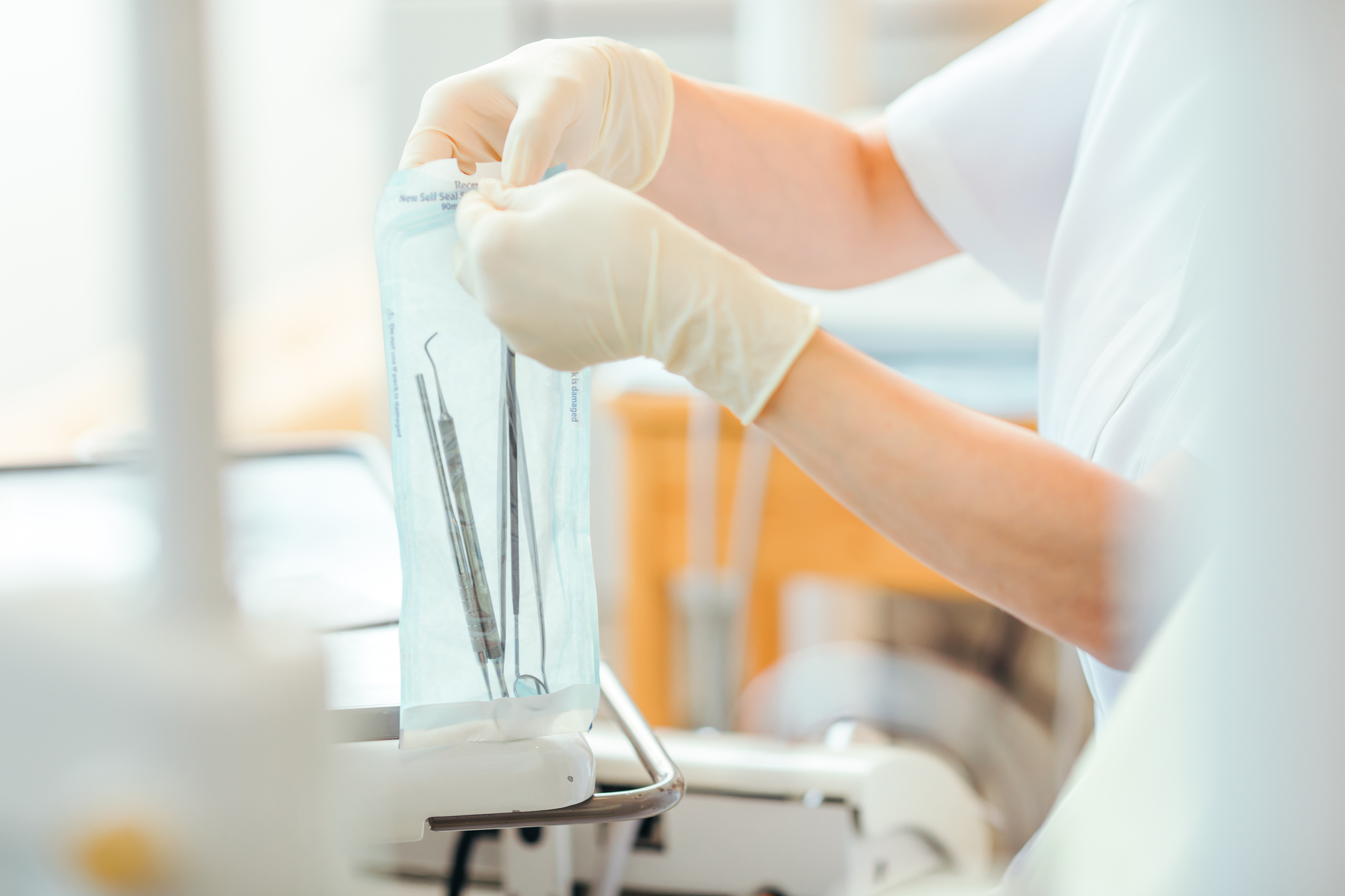 当院では、治療に使用する器具は徹底的に滅菌や消毒を行い、コップやエプロンなどは可能な限り使い捨て(ディスポーザブル)のものを使用しています。院内で使用する水の衛生管理も徹底して行っておりますので、ご安心ください。